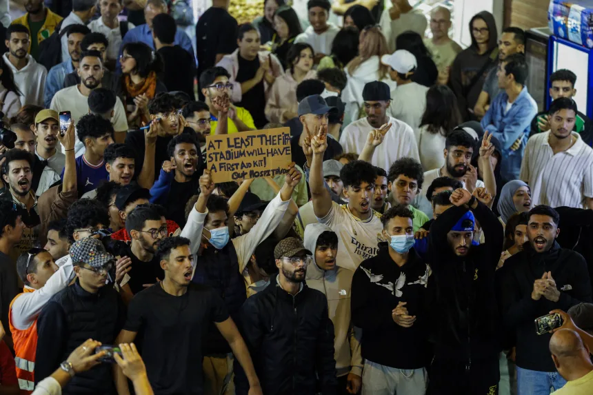 “We need hospitals, not stadiums,” one protester shouted during a demonstration in Rabat’s market district, echoing a sentiment widely shared on social media.