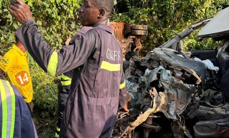 The crash, reported by the Ghana National Fire Service (GNFS), involved a Hyundai minivan (AS 8655-20) and a Hyundai truck (AS 3948-24). According to preliminary information, the minivan driver attempted to overtake another vehicle but veered into the path of the oncoming truck, resulting in a violent impact that killed him instantly.