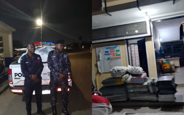 The two officers drove the police vehicle from Sakumono to a forest near Peki Tsibu, where they received the drugs from a Benz bus. They were arrested on their return journey to Accra. Evidence showed this was the second time the officers had engaged in such an operation.